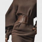 Cléa - Chic Short Knit Dress with a Structured Belt