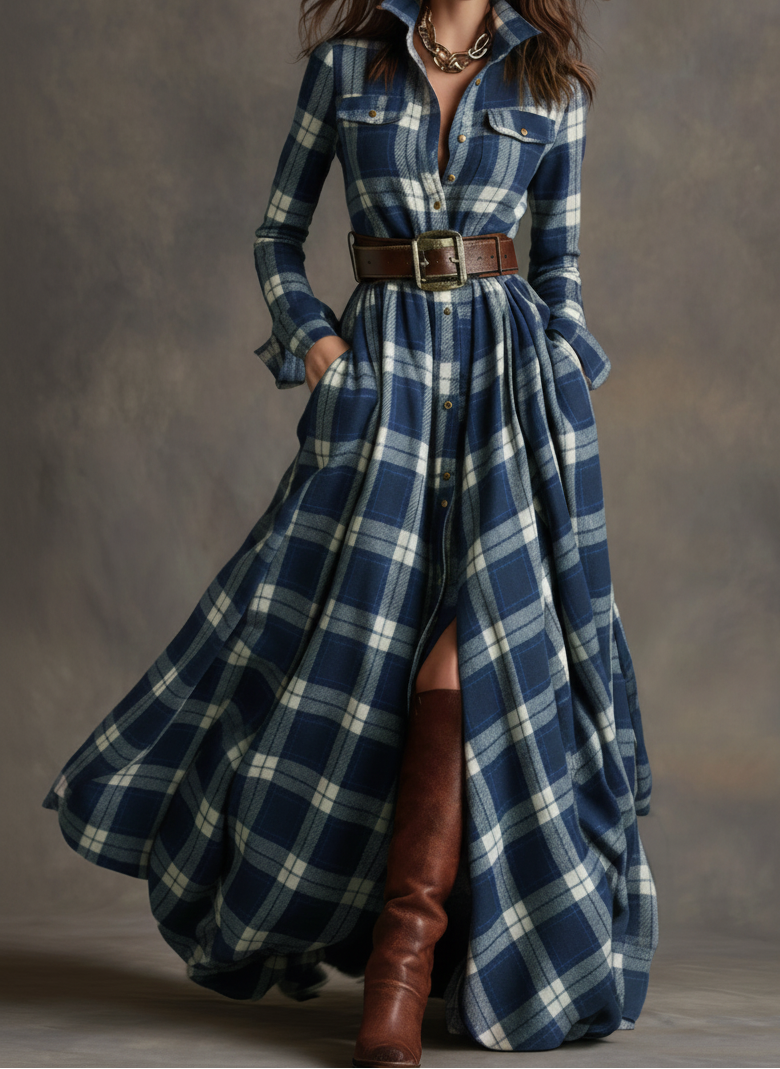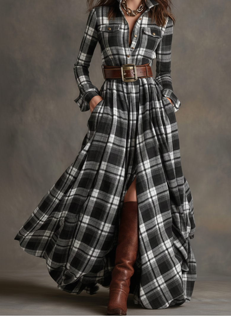 • A timeless plaid pattern, softly flowing silhouette, and flattering button-up design come together in a dress created for comfort, confidence, and effortless elegance. Designed to move with you, this dress fits beautifully into your everyday wardrobe while providing ease, style, and sophistication.