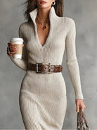 Feel stylish, confident and comfortable – wear the Arin | Elegant Ribbed Knit Dress with flair.